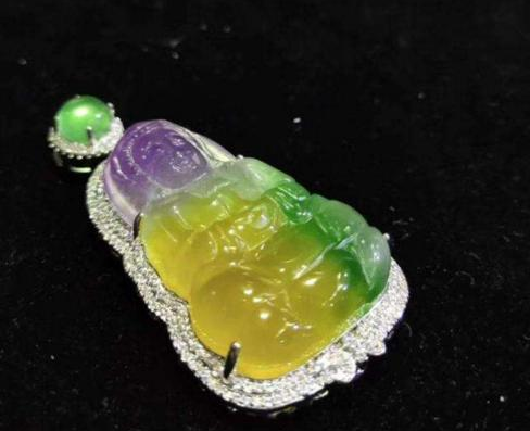 很多翡翠挂件都会“豪镶”,有了配钻、配石的陪衬,看起来确实“壕气”很多,但小宝还是建议大家选择裸底件而非镶嵌封底。